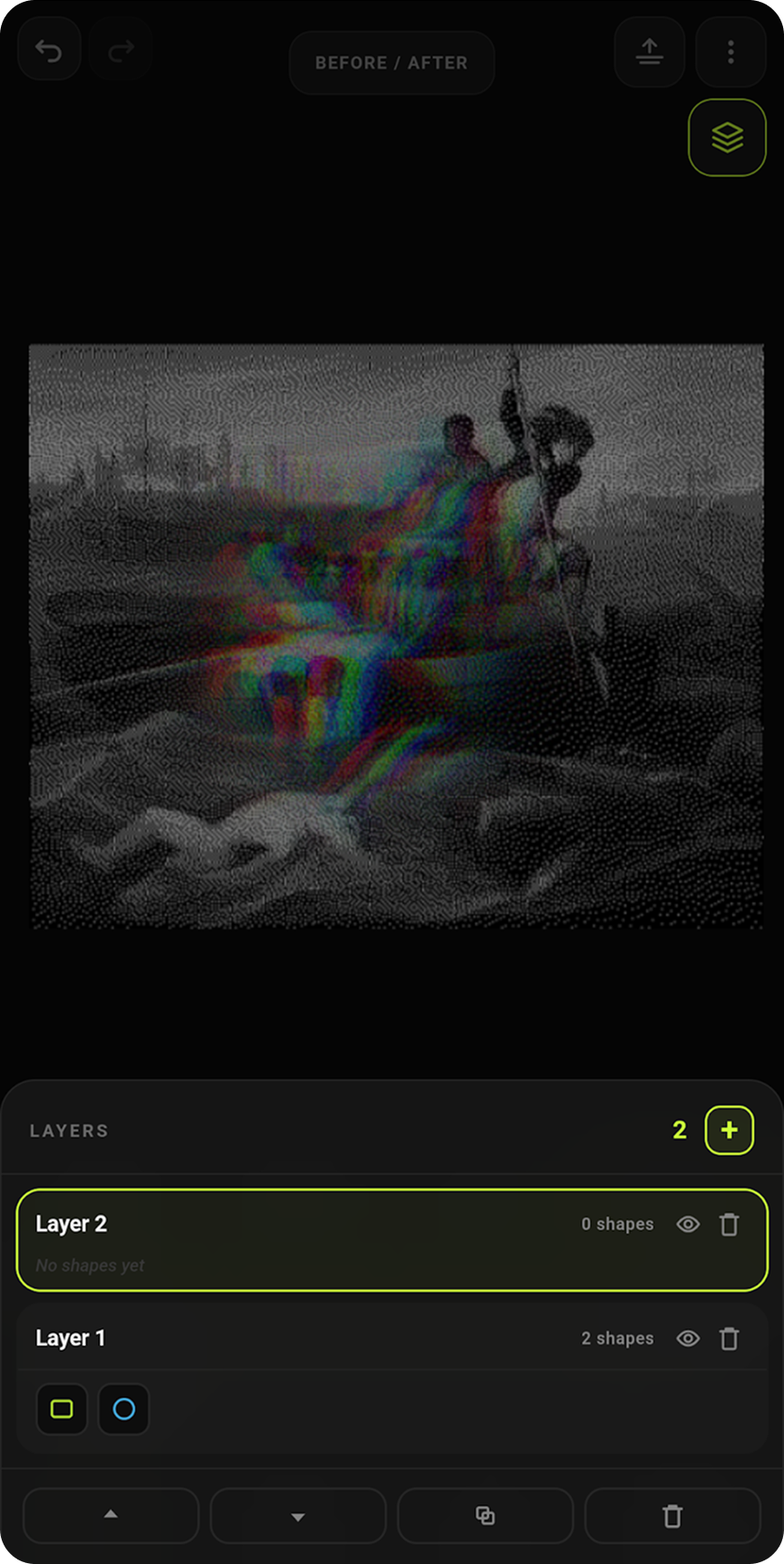 Effects come first, followed by lightweight controls. The layers panel and sliders were designed to stay simple and accessible without taking over the screen.