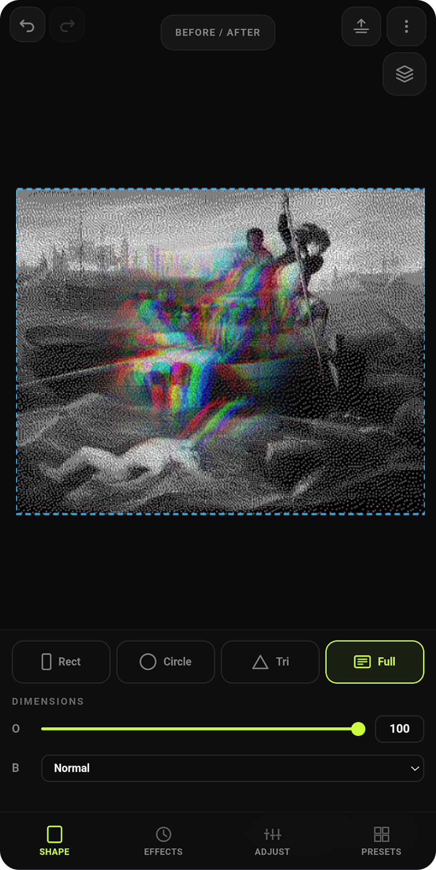 Users start with strong visual presets, then refine using a simple layers panel and a few key sliders.
